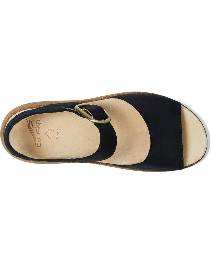- Step into effortless elegance wearing Dansko® Bianca, where comfort meets chic. Crafted from premium leather, the nubuck upper is treated with 3M Scotchgard™ for stain resistance, ensuring lasting beauty. The chrome-free suede sock lining enhances breathability, while the energy-return BPU footbed with memory foam delivers exceptional cushioning for all-day comfort. Featuring a dual-density cork and EVA midsole for optimal support and a lightweight rubber outsole for long-lasting durability, this open-toe sandal is as functional as it is stylish. The adjustable buckle ankle strap ensures a secure, tailored fit, making it perfect for every adventure. Style and comfort redefined!