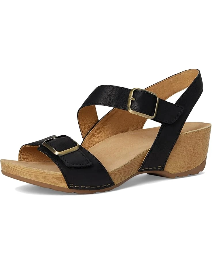- Find your perfect fit with the Dansko® Trinity sandals’ celebrated arch support and two points of adjustability. They are crafted with a leather upper, leather lining, and cushioned suede footbed for a soft underfoot experience. The stapled construction offers added durability. Get ready for a party or a casual outing wearing these heeled sandals.