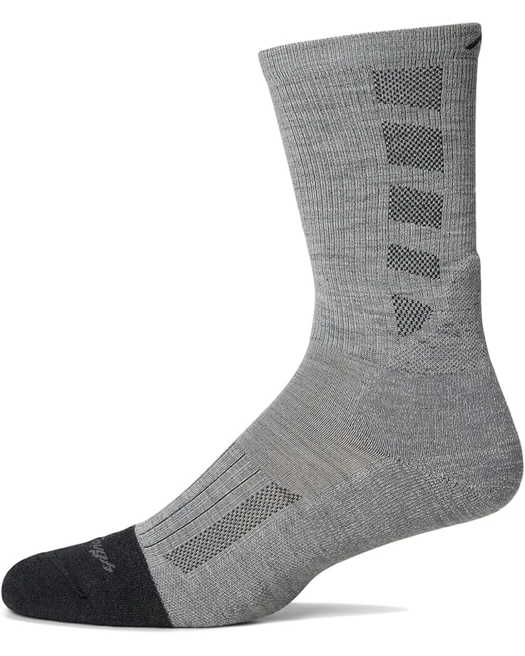 Love these socks! They are my faborite summer work socks. The best of both worlds, mid weight cushion and light weight upper. Love the mid calf, just the right height and they stay up.