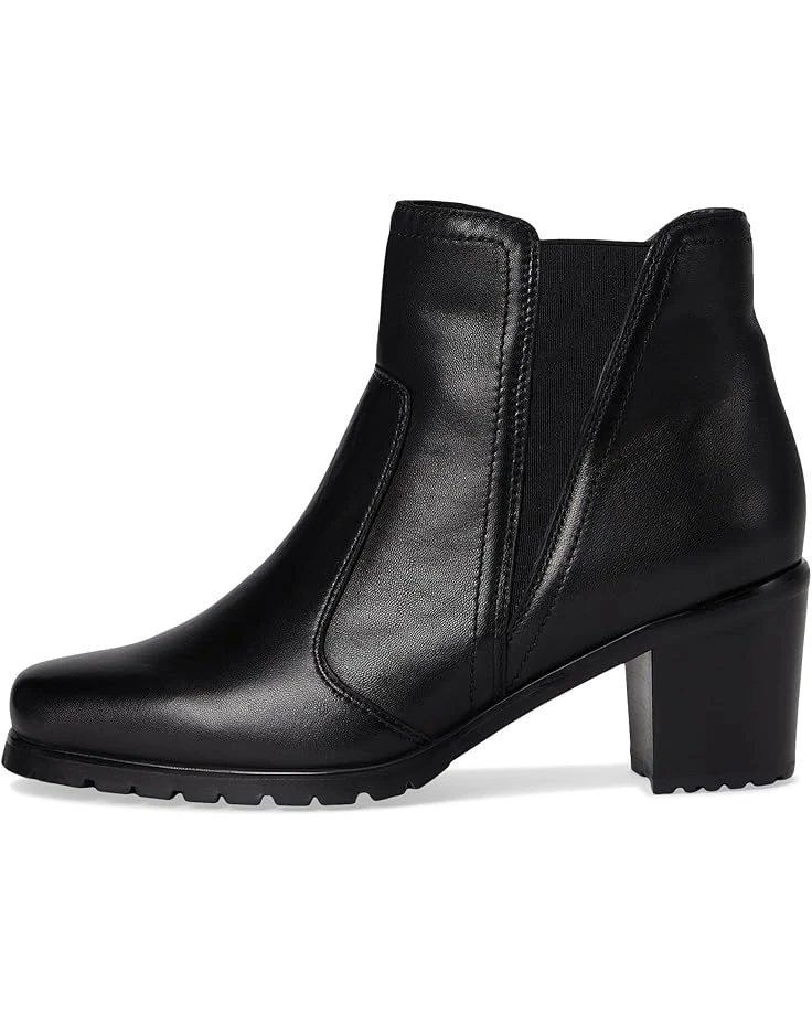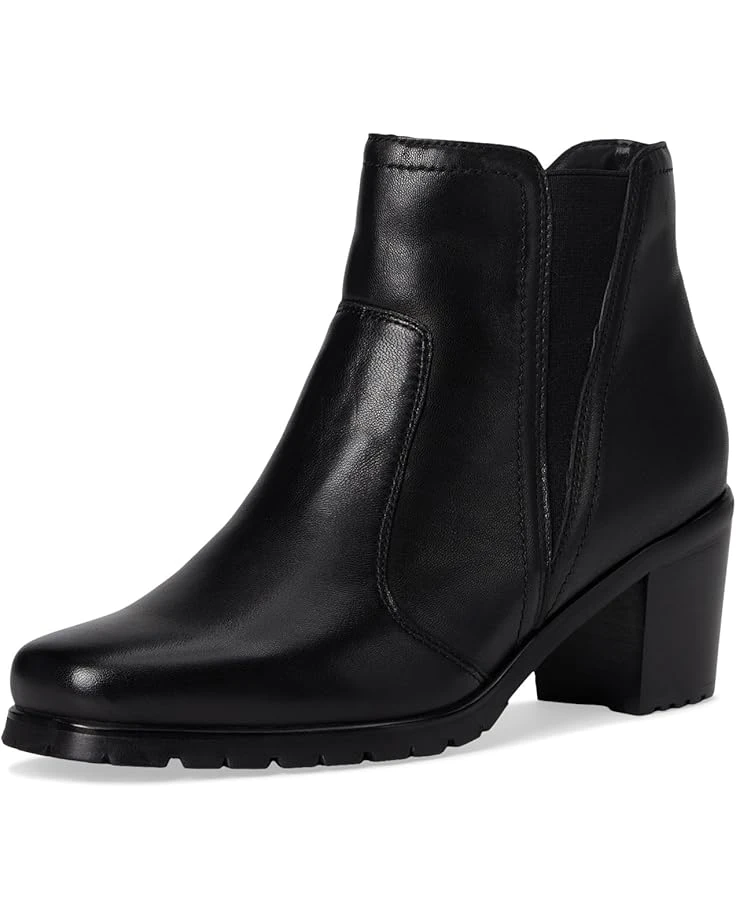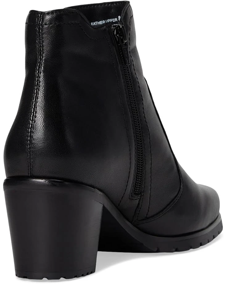 This bootie is very well made, the leather soft and comfy, and stylish. I particularly liked the slightly squared-off toe. However, the block heel was not for me.