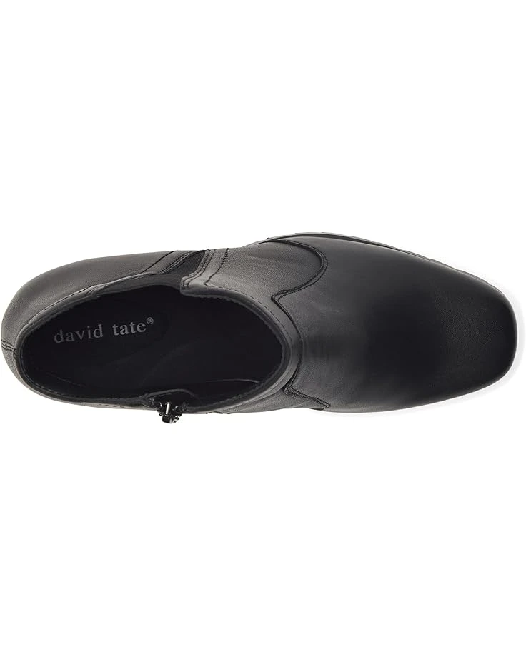 - Featuring a stacked heel, square toe, an elastic side panel, and an inside zipper, the David Tate® Energy is a stylish ankle-high boot with a mini lug rubber outsole. Crafted from a leather upper, fabric lining and a removable, memory foam cushioned insole with arch support.