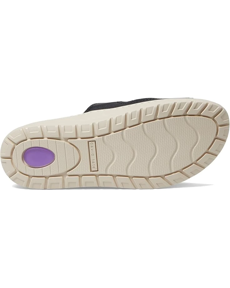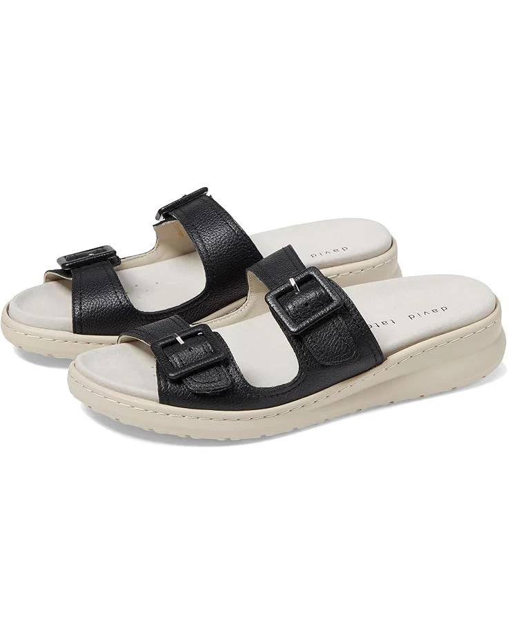 - Step into ultimate comfort wearing the David Tate® Frenchy Flat Sandals. The slip-on footwear features leather upper construction with dual hook-and-loop adjustable buckle decorative straps and open round toe silhouette.