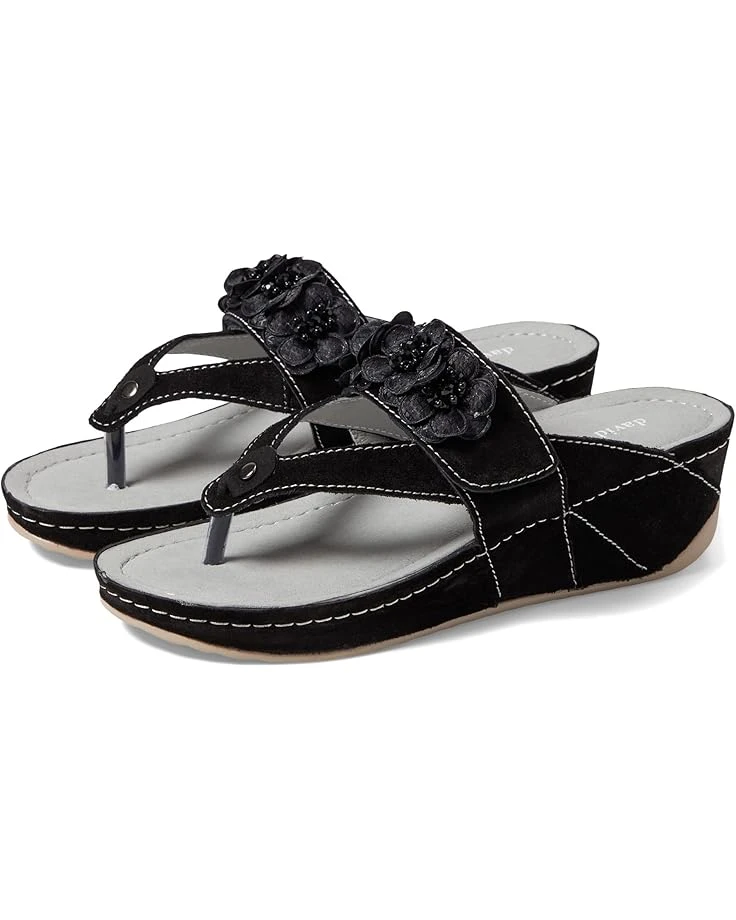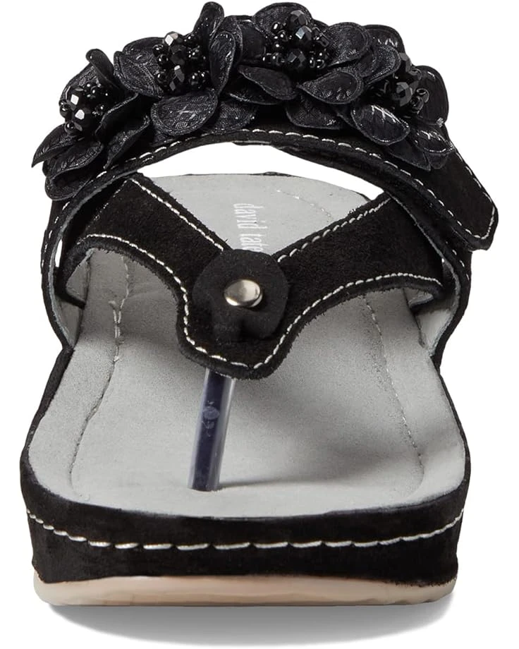 - David Tate® Garden Flats feature a minimalist design with dimensional floral accents on the upper strap for a charming appeal and a cushioned footbed for all-day comfort.