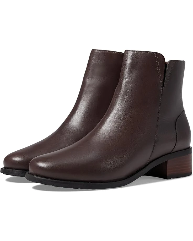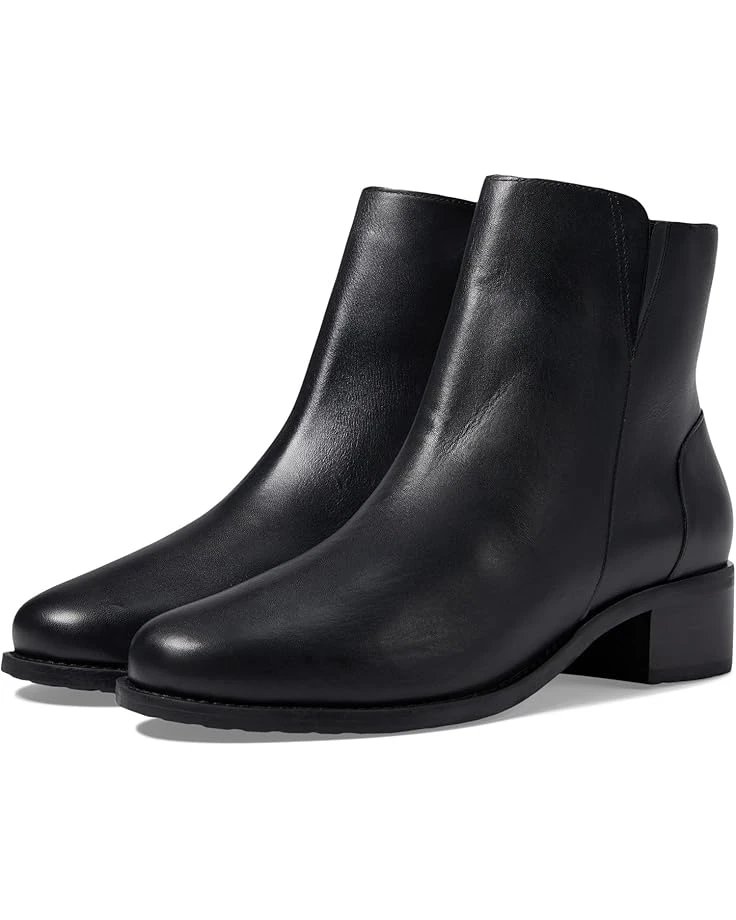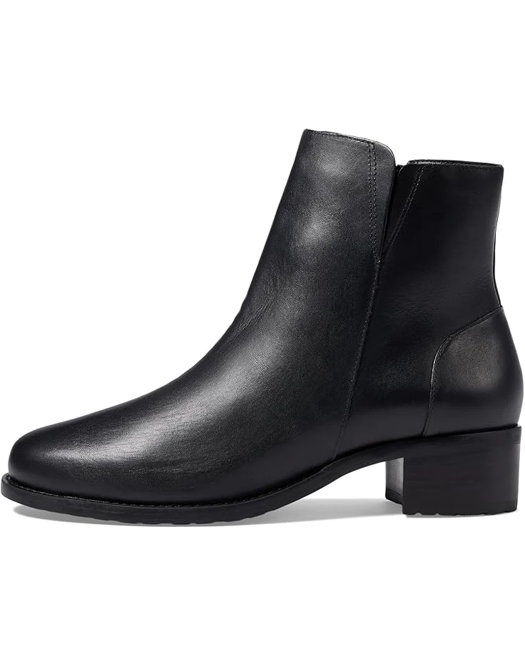 Quality, stylish boots! I like that they have a clean look with no hardware, so they go with everything and can be dressed up. The round toe and insole make them comfortable, and I like that the insoles are removable if I ever want to swap for my own. I don’t wear heeled or laceless shoes much but these are easy and comfortable to walk in and not loud despite the block heel. They did rub against the backs of my ankles with no-show socks at first, but were comfortable when I switched to tall socks.