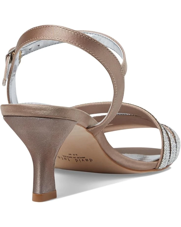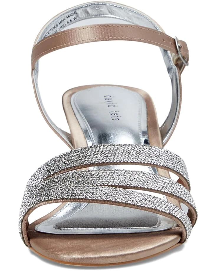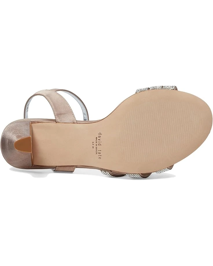 - No matter the occasion, complement your flawless look in the David Tate® Trio sandals. Featuring a round, open toe silhouette with beautiful rhinestone on the triple banded strapping and an adjustable buckle closure strap.